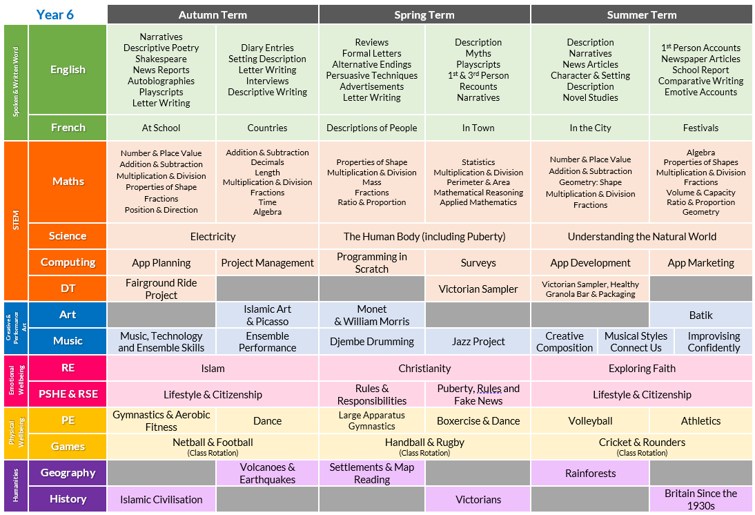 Your child will study a wide variety of topics as part of their curriculum studies at Normandy Village School. Please see below details of the curriculum content that your child will study in Year 6.